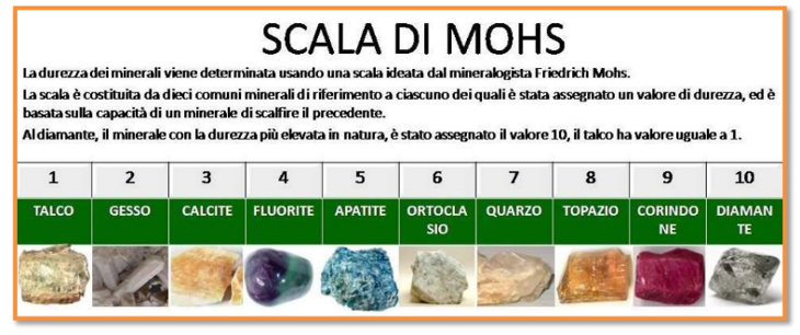 - La durezza è la capacità di un corpo di resistere alla scalfittura. Si può descrivere anche come la capacità del grano abrasivo di penetrare il materiale lavorato. È definita come la resistenza alla deformazione permanente. Si rappresenta con la scala di Mohs, di facile applicazione e specifica per i minerali.